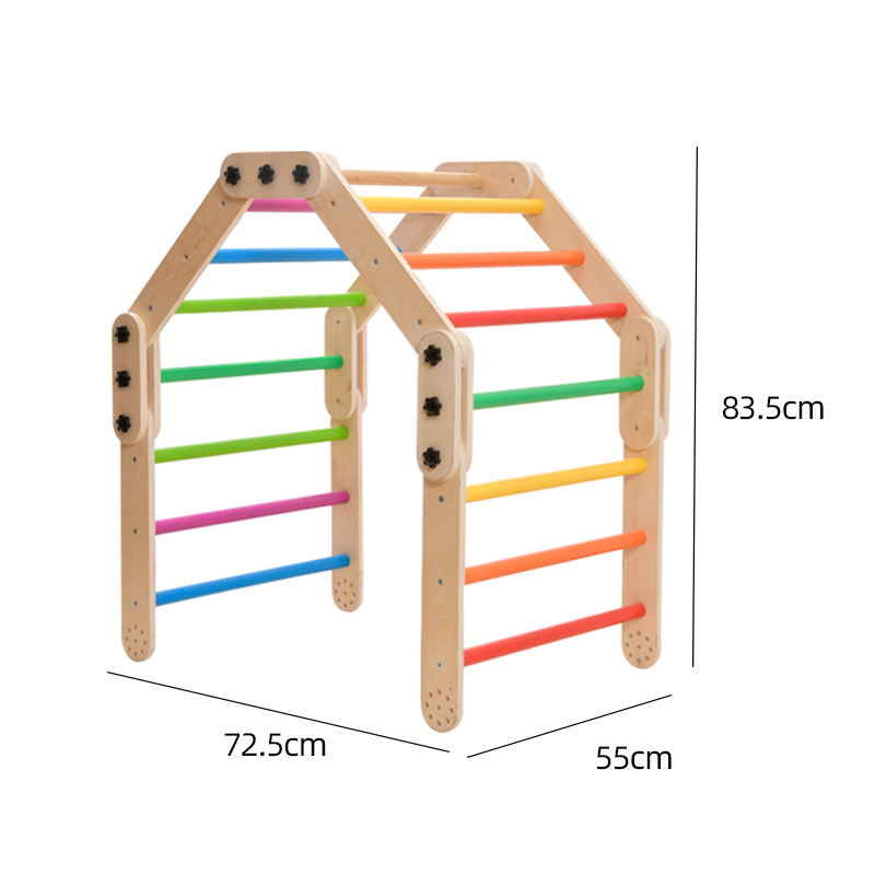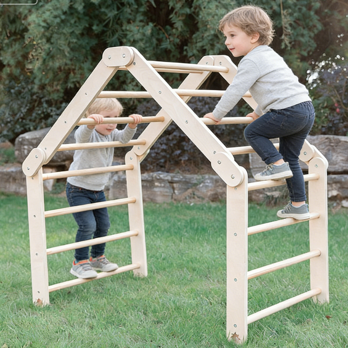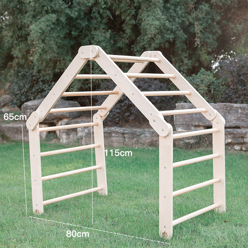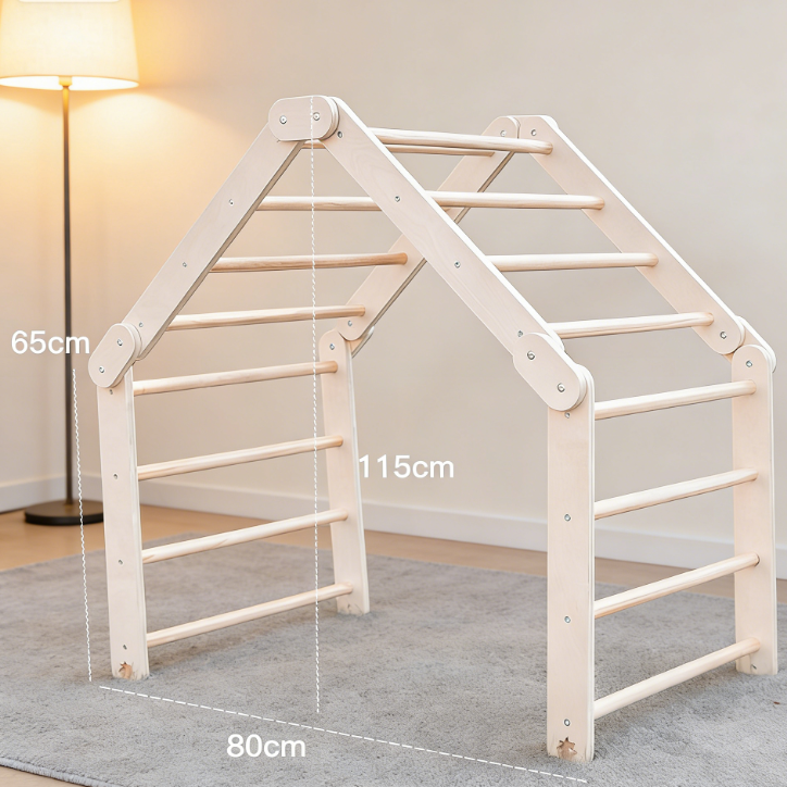 Grimpeur triangulaire Pikler en bois Montessori, Aire de jeux intérieure en bois massif pour enfants 3+, Surface lisse et sûre (Certifié CE/EN71/CPC) – Améliore la coordination & Balance-MD2601
